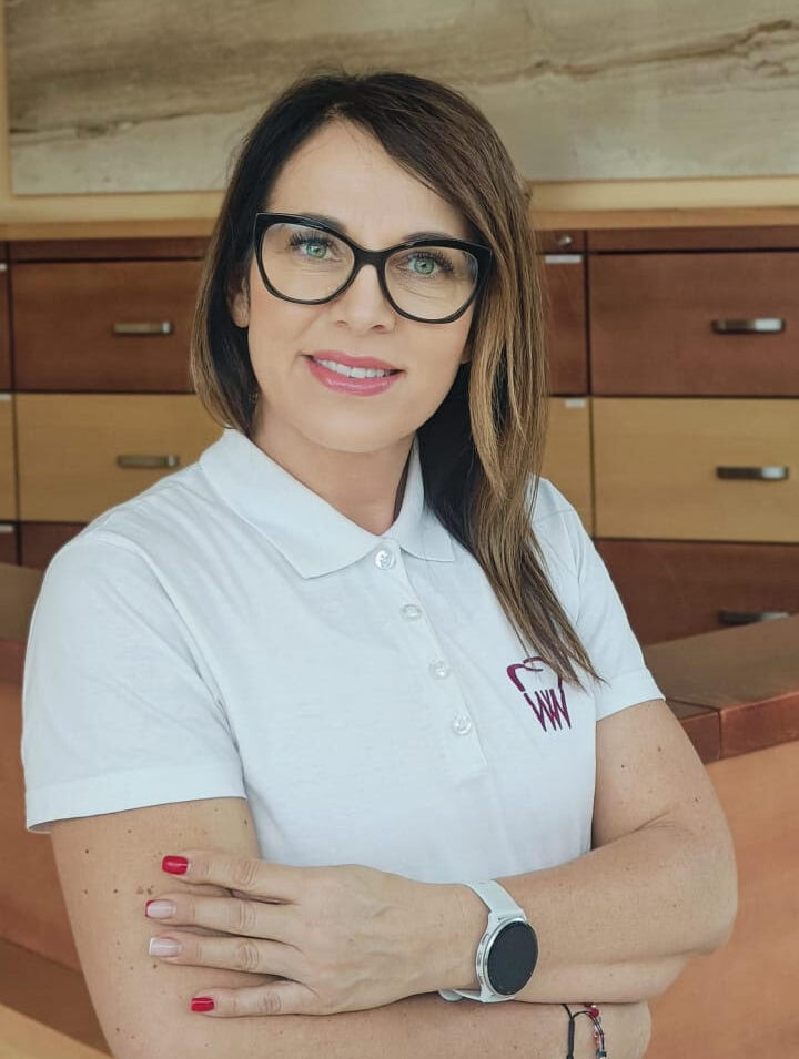 W naszej przychodni pełni rolę rejestratorki. Jest odpowiedzialna za organizowanie dnia pracy zespołu oraz kierowanie Pacjentów do odpowiednich lekarzy. Od wejścia do wyjścia Pacjenta z gabinetu dba o to, aby wizyta w naszej placówce była komfortowa i przebiegła w miłej atmosferze. Cechuje ją wysoka kultura osobista, otwartość, umiejętność rozwiązywania problemów oraz dobra organizacja pracy.